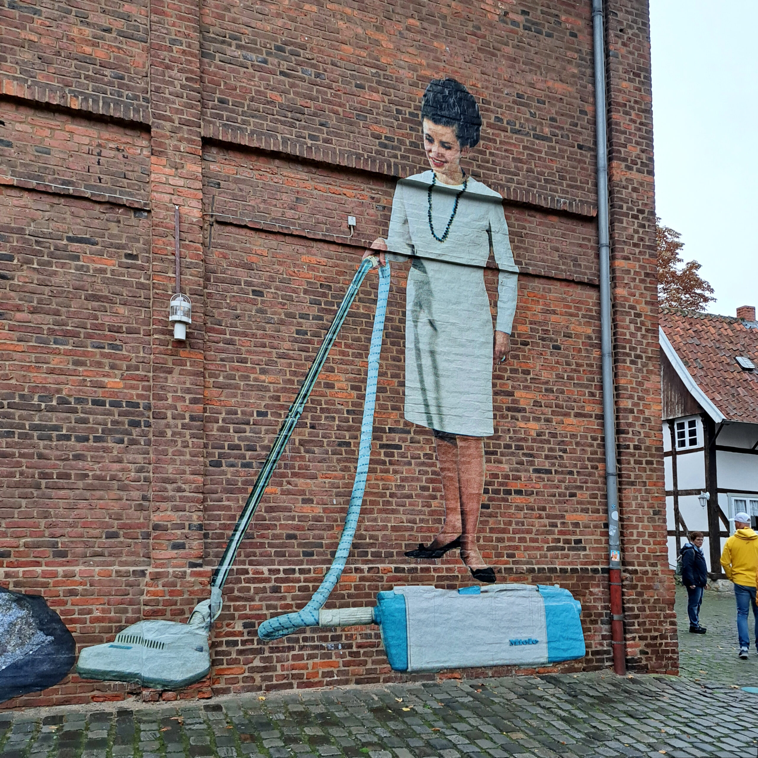 Der Begriff stammt aus der Street-Art-Kul­tur. Groß­for­ma­tige Bil­der oder Pos­ter wer­den auf Papier gedruckt und mit Leim oder Kleis­ter im öffent­li­chen Raum ange­bracht. Sie sind daher nur tem­po­rär sicht­bar und las­sen sich rück­stands­los ent­fer­nen. Das Künst­ler­duo Maria Vill und David Mann­stein hat diese ver­gäng­li­che Frei­luft­aus­stel­lung nach inten­si­ven Recher­chen zur Stadt­ge­schichte gestal­tet und rea­li­siert. Im Rah­men einer Füh­rung haben wir viel Wis­sens­wer­tes über das Pro­jekt und die Geschichte der Stadt Güters­loh erfah­ren.