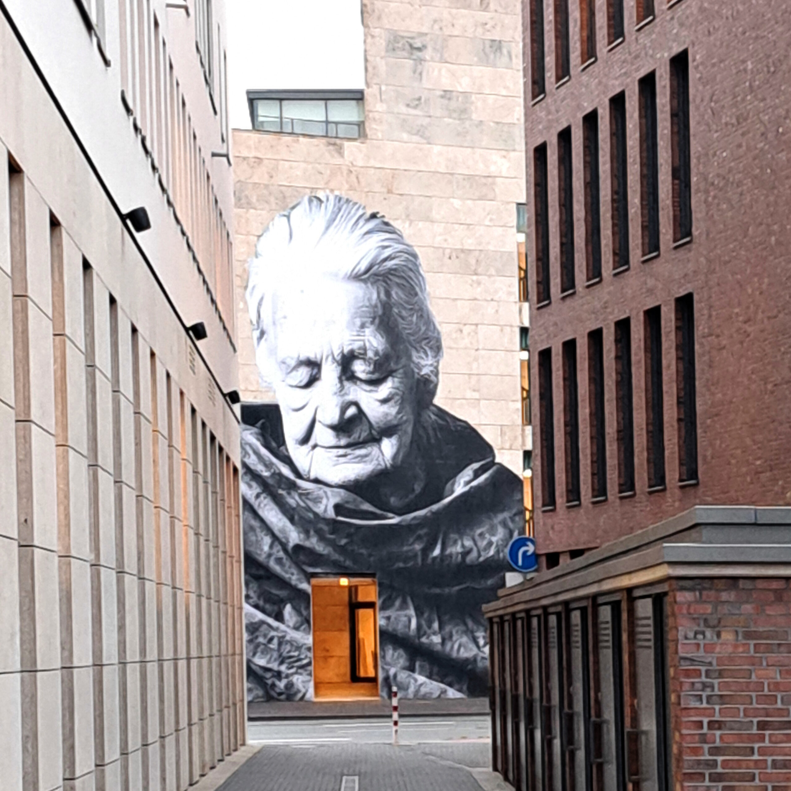 Das größte und zugleich ein­drucks­vollste Por­trät befin­det sich an der Volks­bank und zeigt Sabine Gram­lich (1913–2004). Sie enga­gierte sich in der Frie­dens­be­we­gung und orga­ni­sierte zwi­schen den 1960er- und 1990er-Jah­ren zahl­rei­che Ver­an­stal­tun­gen. Zudem war sie im Güters­lo­her Flücht­lings­rat und bei Amnesty Inter­na­tio­nal aktiv.