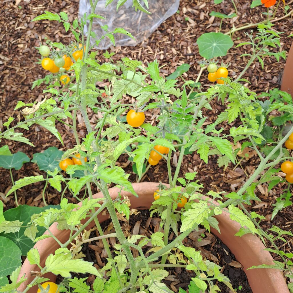 Durch den nicht opti­ma­len Anzucht­be­ginn war der Ertrag nicht so üppig wie erwünscht. Vom Geschmack her waren beide Sor­ten köst­lich. Ins­be­son­dere die klei­nen, gel­ben Wild­trau­ben eige­nen sich zum Naschen im Vor­über­ge­hen. Beide Sor­ten kom­men als Frei­land­to­ma­ten in den Han­del und sind dafür gut geeig­net. Bis zum Herbst blie­ben sie gesund und ohne Braun­fäule.